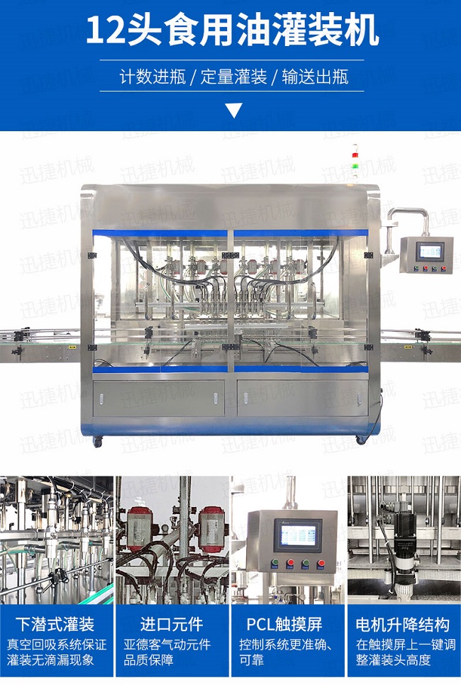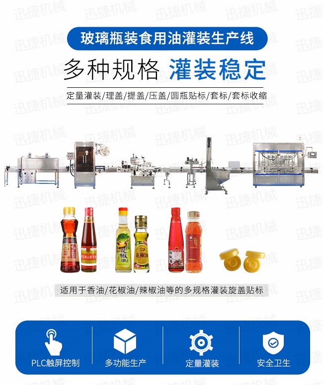 該系列灌裝機(jī)采用容積式計(jì)量灌裝原理,適用于各種規(guī)(100ml-1000ml)的南瓜籽油、榛子油、牡丹籽油、芝麻油、核桃油、山茶油、亞麻籽油、棉籽油、橄欖油、大豆油、玉米油、菜籽油等食用油灌裝。設(shè)備采用伺服驅(qū)動(dòng)活塞計(jì)量,保證了 1‰的灌裝精度,在保證灌裝精度的同時(shí),提高了 20%-35%灌裝速度,操作簡(jiǎn)單,維護(hù)方便,節(jié)省人工成本,生產(chǎn)效率更高。