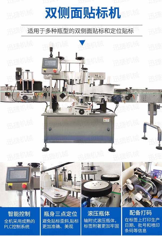 全機(jī)采用的技術(shù),微電腦-PLC-電子光纖傳感器控制系統(tǒng),使整機(jī)運(yùn)行穩(wěn)定、高速; 操作系統(tǒng)采用操作界面控制,操作簡(jiǎn)便、實(shí)用、效率高,并有產(chǎn)量記數(shù)功能; 技術(shù)的速度快且穩(wěn)定; 適用范圍大,可用于各種尺寸的圓形瓶貼標(biāo); 輸附式滾壓瓶體,使標(biāo)簽附著更加牢固; 前后段可選連線使用。