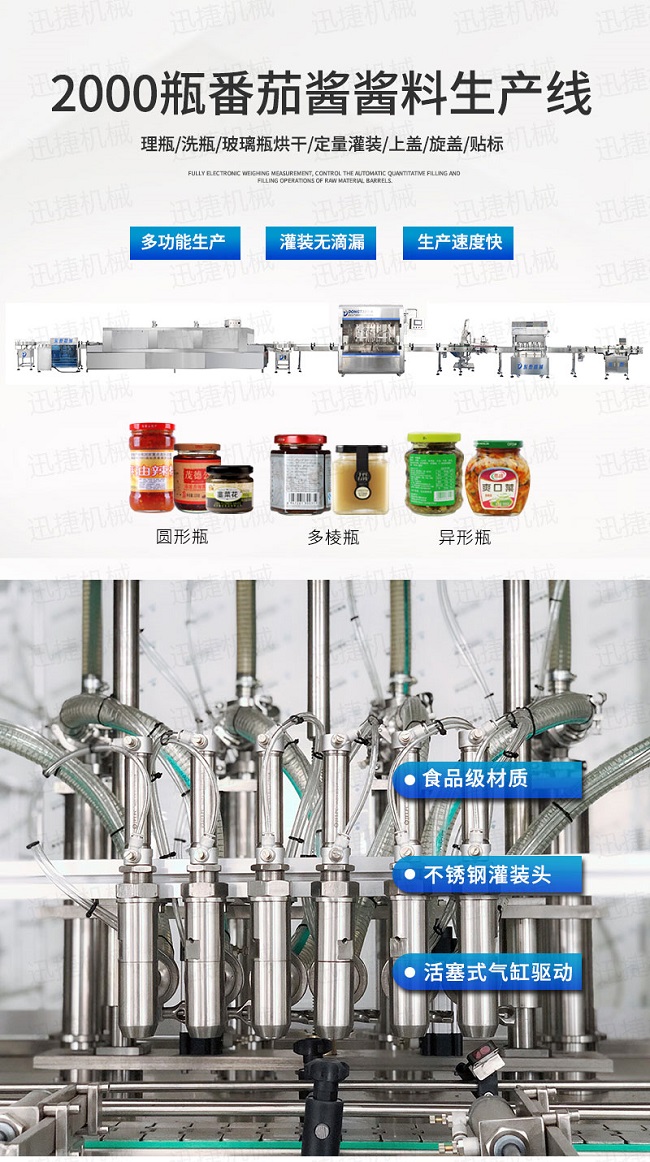 自動化醬料灌裝旋蓋貼標(biāo)生產(chǎn)線優(yōu)勢: