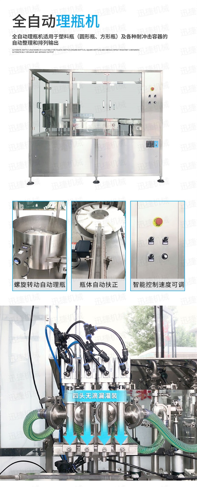 1.自動理瓶、灌裝、壓蓋、旋蓋、貼標。