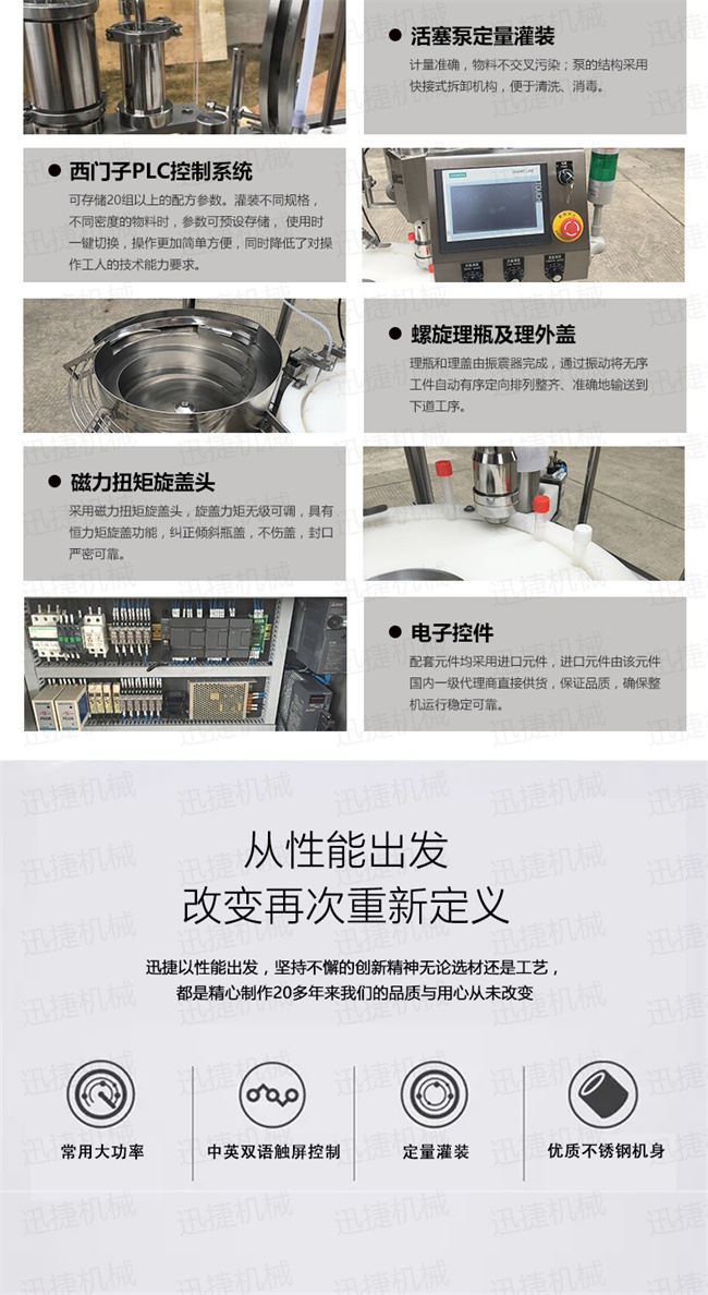 6、采用磁力扭矩旋蓋頭,旋蓋力矩無級可調,具有恒力矩旋蓋功能,糾正傾斜瓶蓋,不傷蓋,封口嚴密可靠;