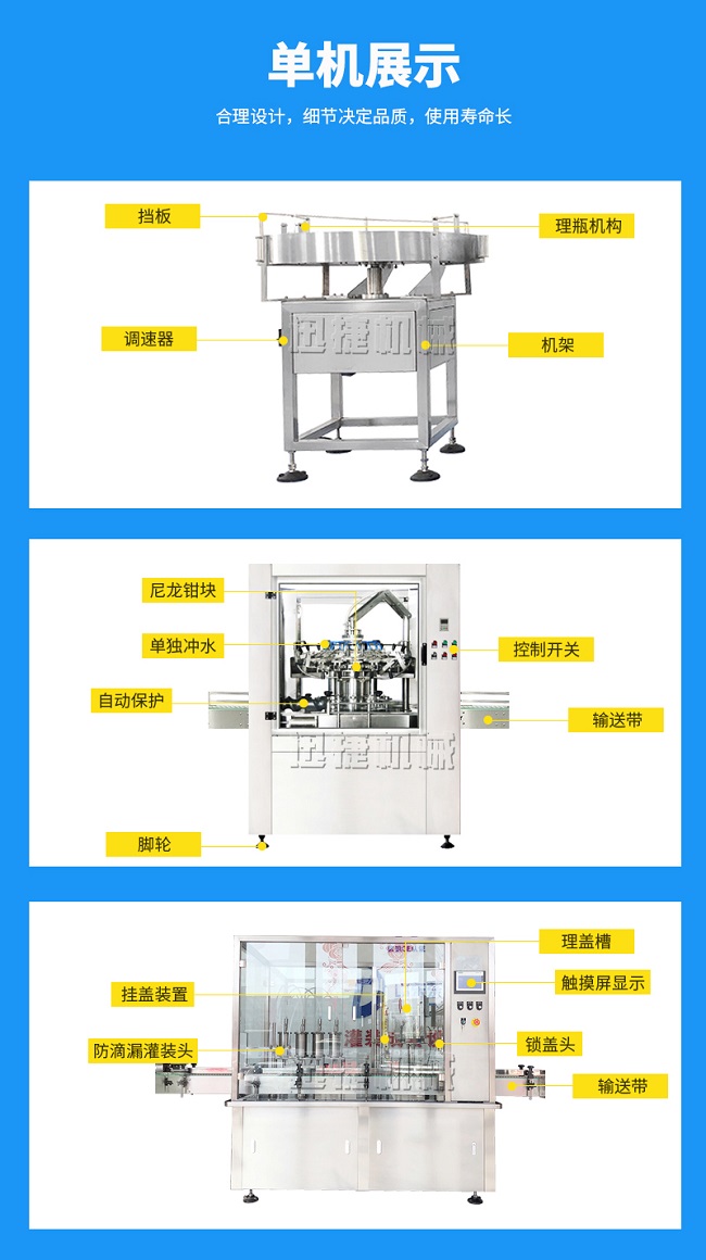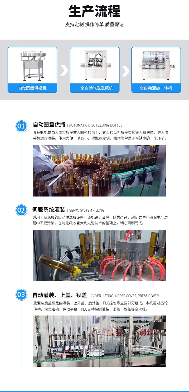 本灌裝流水線設(shè)備具有穩(wěn)定可靠、自動(dòng)化水平高,相比同類產(chǎn)品有著更長(zhǎng)的使用年限,維護(hù)簡(jiǎn)單,整線中各設(shè)備的協(xié)調(diào)性、連貫性強(qiáng),整線設(shè)計(jì)合理等特點(diǎn)。灌裝設(shè)備采用系統(tǒng)結(jié)構(gòu),為當(dāng)今行業(yè)內(nèi)水平,整線滿足量產(chǎn)化、集成化生產(chǎn)的需要。