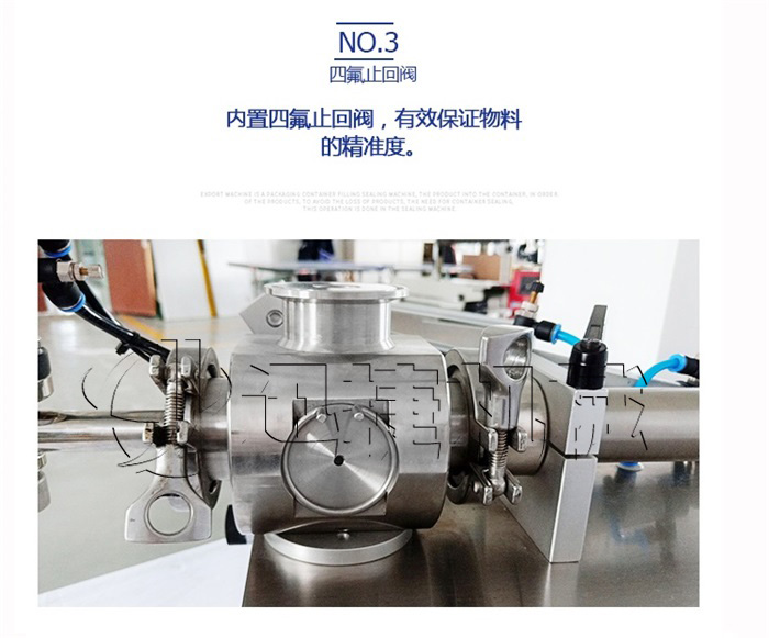 膏體灌裝機(jī)分為半自動(dòng)膏體灌裝機(jī)和全自動(dòng)膏體灌裝機(jī),更具不同的使用要求,通常有分為單頭膏體灌裝機(jī)合雙頭膏體灌裝機(jī)。客戶可以更具不同的生產(chǎn)需求選擇相應(yīng)的設(shè)備,但是不管怎樣,設(shè)備的維護(hù)和保養(yǎng)方式是基本相同的。膏體灌裝機(jī)的機(jī)身不銹鋼外殼,在清洗時(shí)請(qǐng)勿用尖、硬的利器刮其外表面,可用酒精擦洗表面污漬。其次,設(shè)備的氣缸在出廠時(shí)已加好潤(rùn)滑,請(qǐng)不要拆開氣缸或加任何潤(rùn)滑油,而起該設(shè)備的料缸、不銹鋼三通及三通轉(zhuǎn)向閥都能方便拆洗。后,就是設(shè)備的易損件要及時(shí)處理,磨損的密封圈要及時(shí)更換。