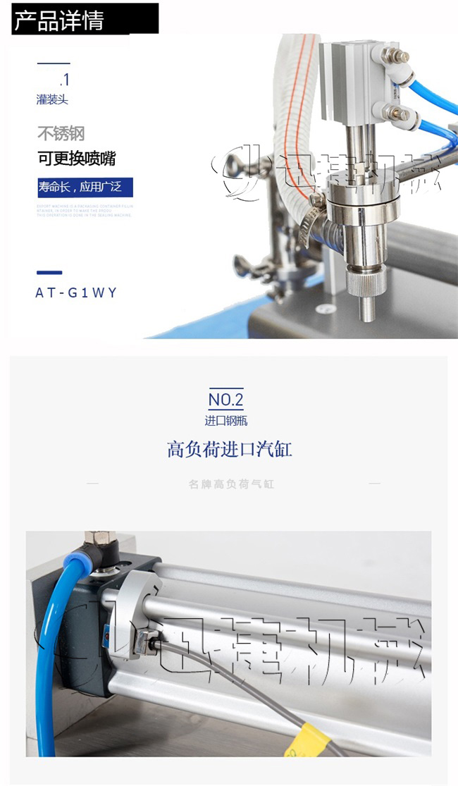 1.小型液體灌裝機氣動部分均采用德國FESTO和日本SMC的氣動元件;